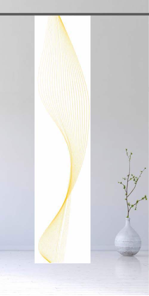 Das Gewebe des Flächenvorhangs besteht zu 100% aus Polyester, die Bedruckung erfolgt im Sublimationsverfahren und garantiert somit ein Maximum an Langlebigkeit.