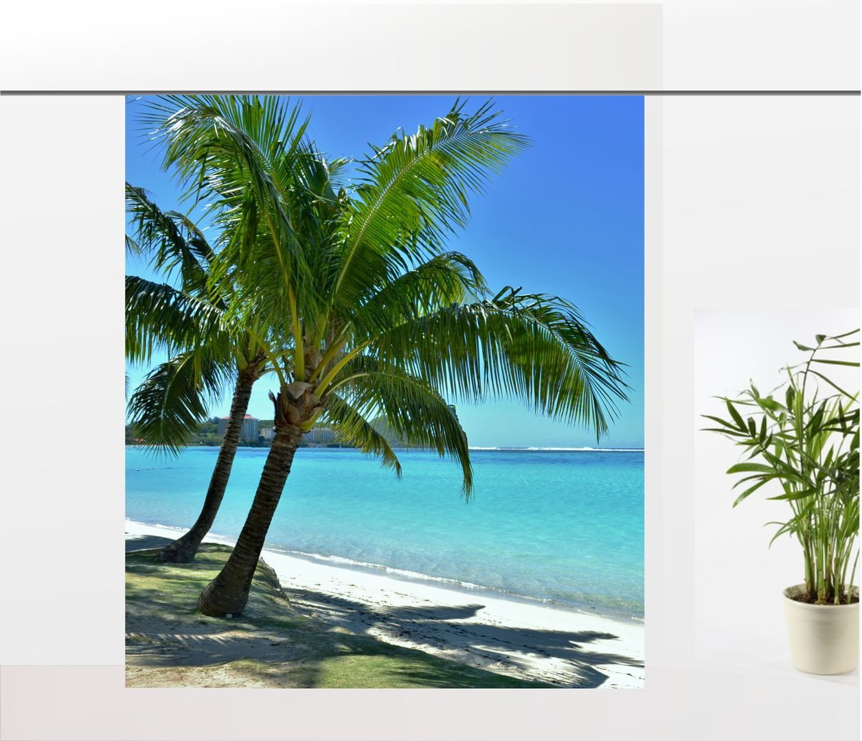 Das Gewebe des Flächenvorhangs besteht zu 100% aus Polyester. Der Druck erfolgt im Sublimationsverfahren und garantiert somit ein Maximum an Langlebigkeit.