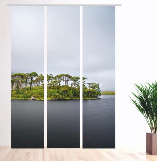 Beeindruckend ist dieses schöne Motiv mit den emporragenden Kiefern aus der grünen Bewaldung der Insel. Stellen Sie sich dieses Bild als neue Fenster-Dekoration in Ihrer Wohnung vor. Da sollte doch dieser Flächenvorhang aus unserer hauseigenen Gardinen-Kollektion aus Thüringen nicht fehlen. Man wird Sie darum beneiden.