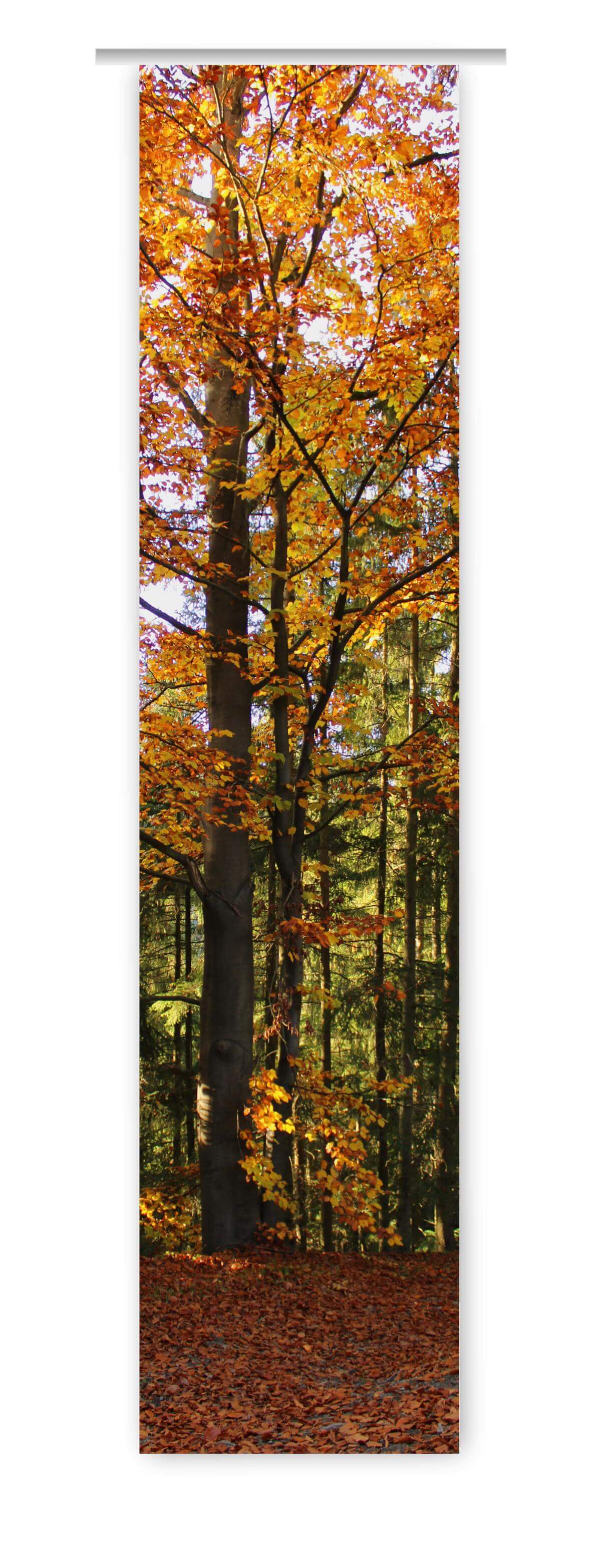 Das Gewebe des Flächenvorhangs besteht zu 100% aus Polyester, die Bedruckung erfolgt im Sublimationsverfahren und garantiert somit ein Maximum an Langlebigkeit.