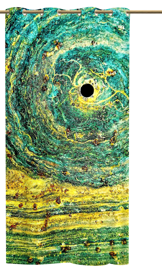 Fenster-Dekorationen können einer Wohnung ein völlig neues Gesicht geben und Sie von Grund auf ändern. Durch Farbe und Motive wird das möglich. Wenn Sie Lust auf Veränderungen in Ihrer Wohnung haben, dann sehen Sie sich in unserer thüringischen Gardinen-Collektion nach Ideen um, die Sie in Ihrer Wohnung umsetzen können. Dieser bewunderungswürdige Ösenschal besticht mit seinem futuristischen Motiv und den leuchtenden Farben. Blitz und Donner prägen das Bild. Auf den ersten Blick verborgen, öffnet sich bei genauer Betrachtung das Geheimnis. Der schwarze Punkt fängt den Blick ein. Alles andere scheint sich darauf zu zubewegen. Ein echter Hingucker für Ihre Wohnung.