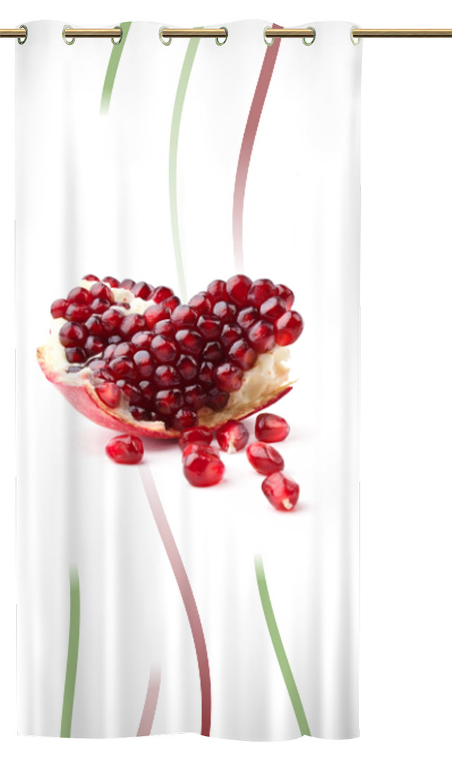 Auf jeden Fall braucht Ihre Wohnung wiedermal ein paar Veränderungen, damit die Attraktivität der Wohnung erhalten bleibt und das Wohnklima verbessert werden kann. Eine neue Fenster-Dekoration ist ein perfektes Mittel, kommen doch durch sie neue Farben und Motive in den Wohnraum, die diesen nachhaltig verändern. Das wird sich auf die Atmosphäre in Ihren 4 Wänden sehr positiv auswirken. Dieser vortreffliche Ösenschal aus unserer thüringischen Gardinen-Collektion überzeugt mit seinem wunderschönen Früchtemotiv. Ein Granatapfel ziert das Bild. Seine roten Fruchtkörper tummeln sich auf dem weißen Hintergrund und kommen so perfekt zur Geltung. Ein Muss für Ihre Wohnung.