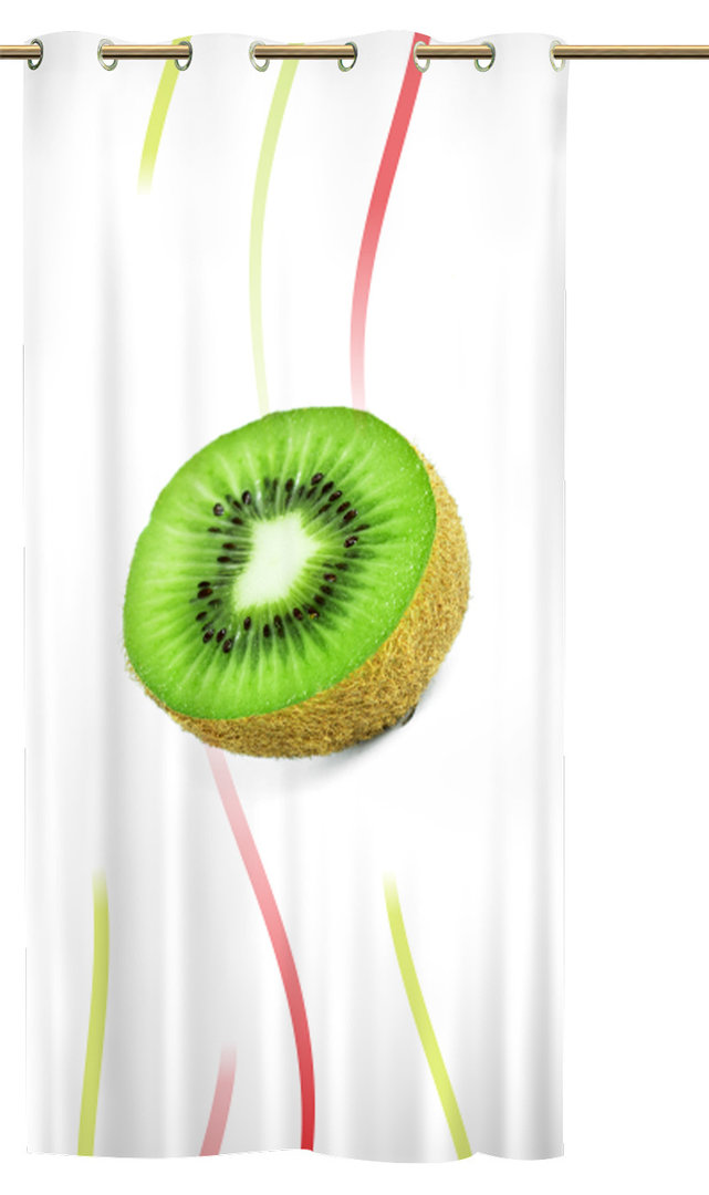 Fenster-Dekorationen bestimmen den Charakter einer Wohnung schon sehr deutlich. Verändern Sie hier etwas, dann verändern Sie das Gesicht Ihrer Wohnung. Neue Farben und Motive kommen damit in den Wohnraum und verändern diesen nachhaltig. Dieser schöne Ösenschal aus unserer hauseigenen Gardinen-Collektion aus Thüringen wird bestimmt einen Platz in Ihrer Wohnung finden. Sein gelungenes Früchtemotiv fällt sofort ins Auge. Eine große grüne Kiwi bildet das Zentrum des Motivs. Es sorgt für Frische im Wohnraum und weckt im Betrachter den Appetit auf etwas ebenso Frisches. Sie werden mit Sicherheit Ihre Freude an diesem Ösenschal haben und andere bestimmt auch.