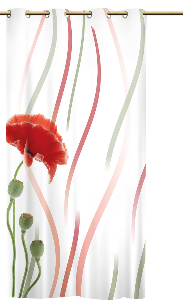 Finden Sie das Passende für Ihre Wohnungseinrichtung! In unserer eigenen Gardinen-Collektion Made in Thüringen haben wir viele tolle Ideen rund um das Fenster zusammengefasst. Hier sollten Sie fündig werden, um Ihrer Wohnung wieder ein neues Gesicht zu geben. Eine Fenster-Dekoration verändert den Wohnraum nachhaltig. Mit diesem wunderbaren Ösenschal werden Sie einen Volltreffer landen, denn mit seinem gelungenen Motiv fällt er sofort ins Auge. Perfekt wird die leuchtend rote Mohnblumenblüte in Szene gesetzt und bestimmt das Bild. Geschlossene Knospen wecken die Vorfreude auf neue Blüten. Die wellenartigen Linien sorgen für Belebung im Motiv und umrahmen die Blüte wunderschön.
