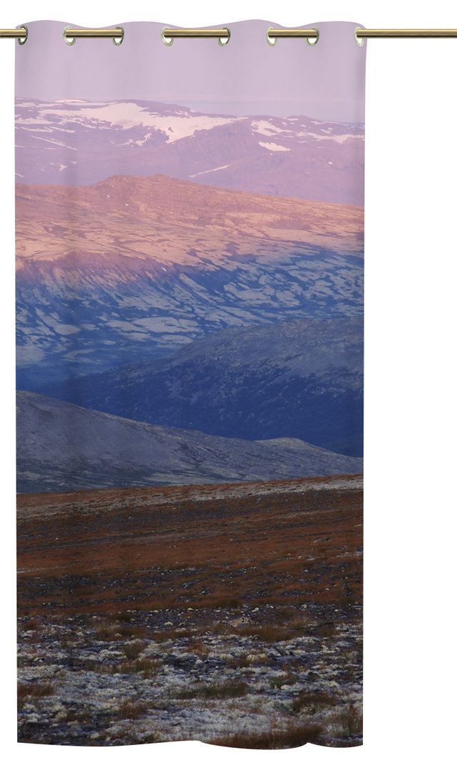 Die sanften Farben der untergehenden Sonne tauchen diese Berglandschaft in ein tolles Licht. Hier möchte man verweilen und ausruhen. Holen Sie sich diesen Ösenschal in Ihren Wohnraum.