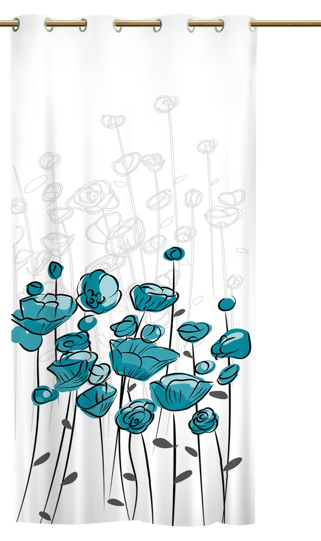Fenster-Dekorationen bestimmen in der Regel den Charakter und die Atmosphäre einer Wohnung. Sollten Sie also über ein paar Veränderungen in Ihrer Wohnung nachdenken, dann schauen Sie sich in aller Ruhe in unserer thüringischen Gardinen-Collektion um. Hier finden Sie alles, was rund um das Fenster insteressant und wichtig ist. Dieser geniale Ösenschal bringt neue Farben und ein neues Motiv in Ihren Wohnraum. Sein abstraktes Motiv holt die Natur in die eigenen 4 Wände. Die großen Blüten bestimmen das Bild und erfüllen den Wohnraum. Die leuchtende Türkis-Farbe hebt die Blüten hervor. Da muss man einfach hinschauen. Dieser Ösenschal wir sicherlich ein Volltreffer werden.