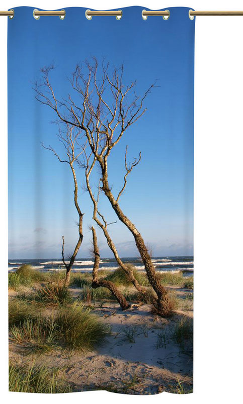 Ein kahler Baum am Ufer des Meeres - welch ein gelungener Kontrast. Dieses Motiv auf diesem genialen Ösenschal aus unserer hauseigenen Gardinen-Collektion aus Thüringen überzeugt in allen Bereichen und sollte als neue Fenster-Dekoration Ihrem Wohnraum wieder neuen Glanz verleihen.