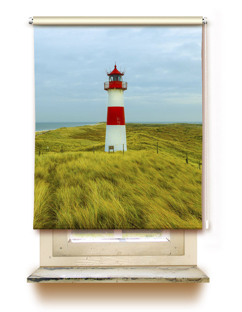 Das Motiv zeigt einen Leuchtturm in Mitten von herrlichen Dünen und im Hintergrund viel Meer. In unserem Onlineshop finden Sie noch ein Vielzahl an Rollos bzw. auch andere Heimtextilien wie Scheibenhänger oder Flächenvorhänge mit einem Meer Motiv - da macht das kombinieren sicherlich einem jeden Spaß!