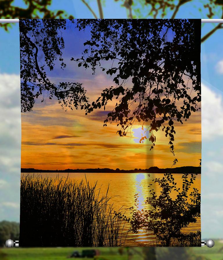 Mit diesem tollen Scheibenhänger holen Sie sich ein Stück fantastischer Natur in Ihre Wohnung. Ein Sonnenuntergang am See ist beeindruckend. Besonders die wunderschönen Farben beeindrucken den Betrachter. Als neue Fensterdekoration könnte dieser Scheibenhänger ein echter Blickfang in Ihrer Wohnung werden. Sie werden es nicht bereuen.