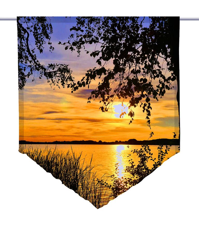 Ein prächtiger Sonnenuntergang am See mit dem Blick auf das Wasser ist schon ein beeindruckendes Motiv. Wunderbar kommen die Farben zur Geltung und erzeugen eine beeindruckende Atmosphäre. Holen Sie sich dieses Stück Natur als neue Fensterdekoration direkt in Ihre 4 Wände. Dieser Scheibenhänger wird ein Blickfang darin werden.