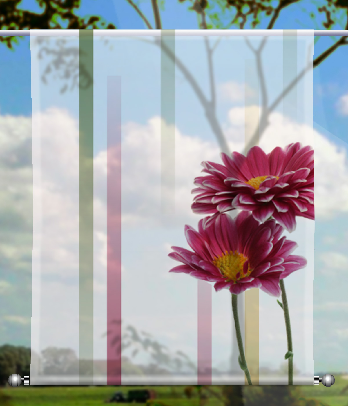 Die Scheibenhänger sind aus einem feinen Polyestergewebe, d. h. feiner Polyester Voile produziert und werden in Handarbeit bei uns im Haus konfektioniert. Die Scheibenhänger verfügen rechts und links über einen Saum.