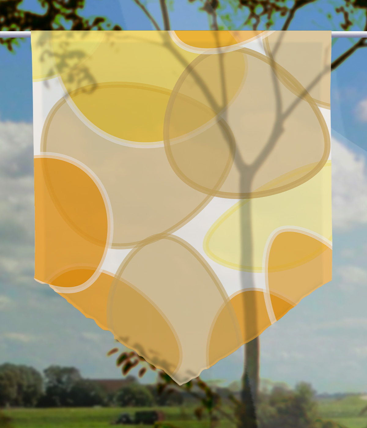 Die Scheibenhänger sind aus einem feinen Polyestergewebe, d. h. feiner Polyester Voile produziert und werden in Handarbeit bei uns im Haus konfektioniert. Die Scheibenhänger verfügen rechts und links über einen Saum.