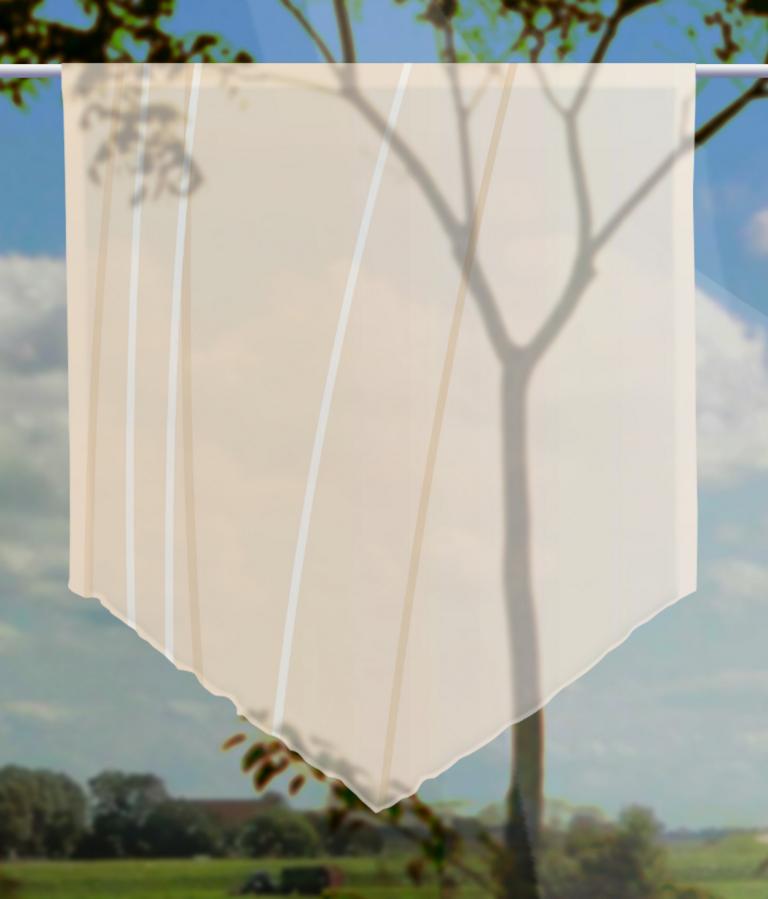 Die Scheibenhänger sind aus einem feinen Polyestergewebe, d. h. feiner Polyester Voile produziert und werden in Handarbeit bei uns im Haus konfektioniert. Die Scheibenhänger verfügen rechts und links über einen Saum.