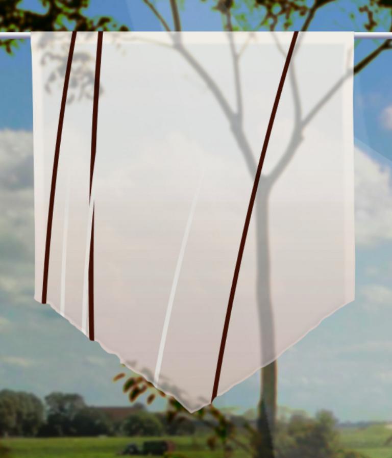 Die Scheibenhänger sind aus einem feinen Polyestergewebe, d. h. feiner Polyester Voile produziert und werden in Handarbeit bei uns im Haus konfektioniert. Die Scheibenhänger verfügen rechts und links über einen Saum.