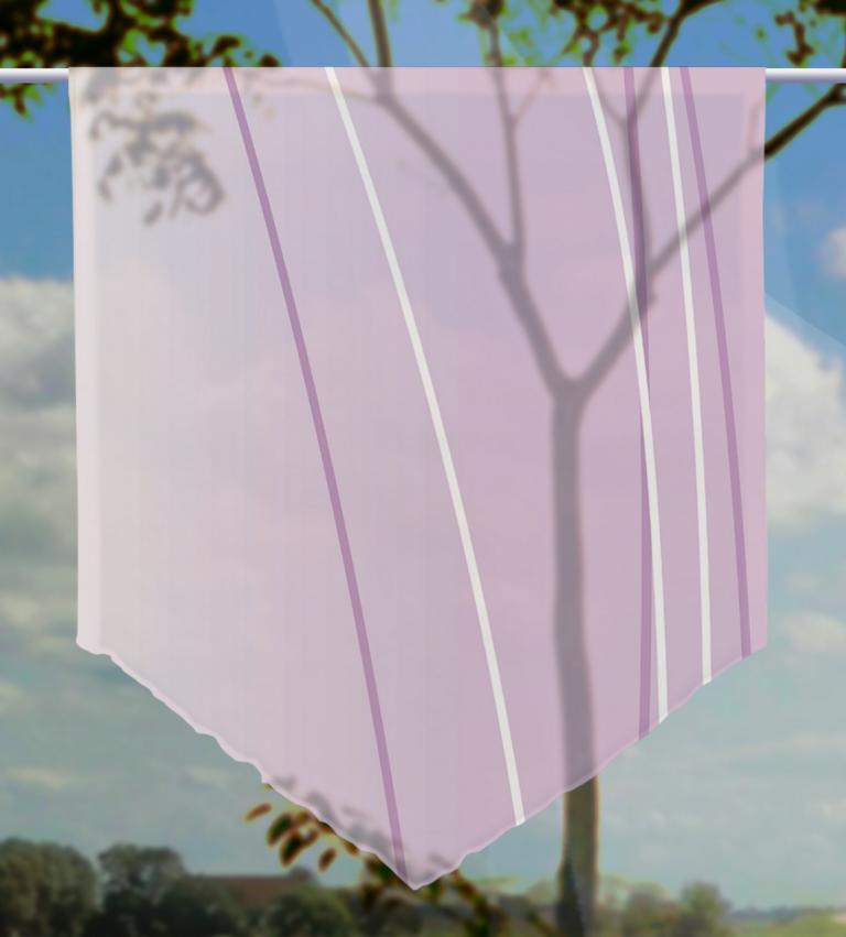 Die Scheibenhänger sind aus einem feinen Polyestergewebe, d. h. feiner Polyester Voile produziert und werden in Handarbeit bei uns im Haus konfektioniert. Die Scheibenhänger verfügen rechts und links über einen Saum.