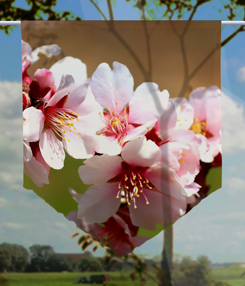 Eine neue Fenster-Dekoration könnte die Lösung für Ihre Wohnung sein. Mit ihr kommen neue Farben und Motive in den Wohnraum, die diesen nachhaltig verändern werden. Damit könnte die Attraktivität Ihrer Wohnung wieder verbessert werden und das Wohnklima ebenso. Dieser Scheibenhänger aus unserer hauseigenen Gardinen-Collektion aus Thüringen ist ein echter Hingucker und wird Ihre Wohnung komplett aufwerten. Sein Naturmotiv holt den Frühling direkt in Ihre 4 Wände. Große, rosafarbene Blüten bestimmen das Bild und fesseln den Blick des Betrachters. Dem werden auch Sie sich nicht entziehen können. Eine tolle Atmosphäre wird in Ihrer Wohnung entstehen.