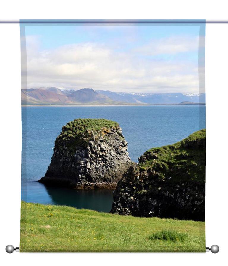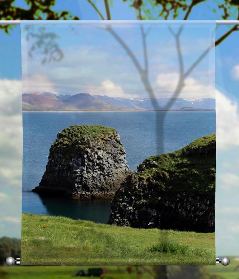 Was für ein traumhafter Blick! Berge und das Meer bilden eine vollendete Einheit und schaffen ein gelungenes Motiv für diesen außergewöhnlichen Scheibenhänger. Als neue Fensterdekoration könnte dieser ein Blickfang besonderer Art in Ihrer Wohnung werden. Die Natur Islands, eingefangen in Ihrer Wohnung - was will man mehr.