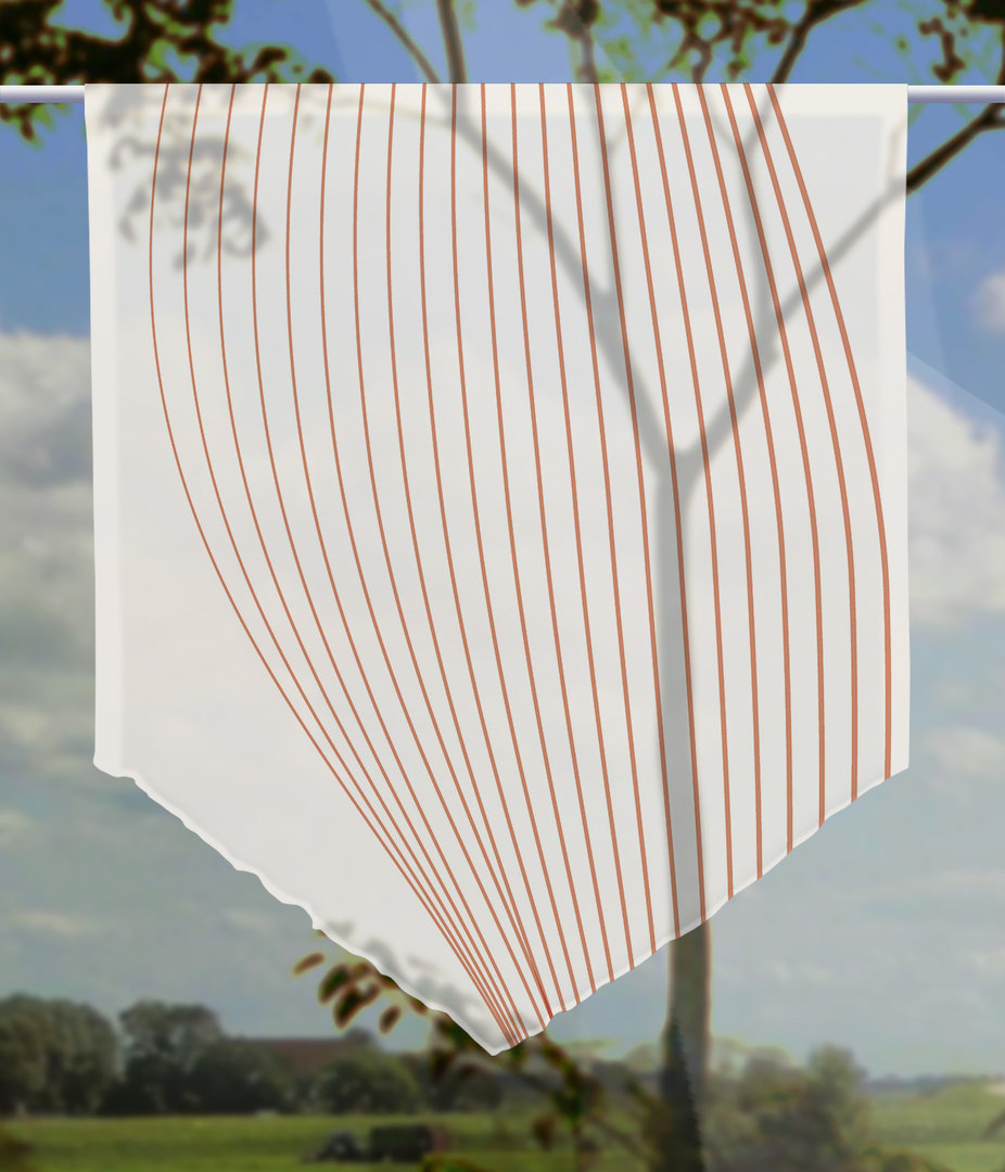Sie sind Liebhaber von einfachen Motiven und suchen genau soetwas für Ihre Wohnung? Dann lassen Sie diesen einzigartigen Scheibenhänger einmal eine Weile auf sich wirken. Dieses Exemplar aus unserer hauseigenen Gardinen-Produktion in Thüringen macht mit seinem einfachen Linien-Motiv, die wie Wellen über den Scheibenhänger zu tanzen scheinen, eine echt gute Figur. Durch die schlichte Farbgebeung lässt er sich mit Sicherheit in jeden Einrichtungsstil integrieren. Probieren Sie es aus.