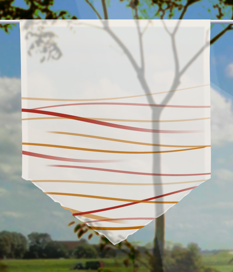 Die Scheibenhänger sind aus einem feinen Polyestergewebe, d. h. feiner Polyester Voile produziert und werden in Handarbeit bei uns im Haus konfektioniert. Die Scheibenhänger verfügen rechts und links über einen Saum.