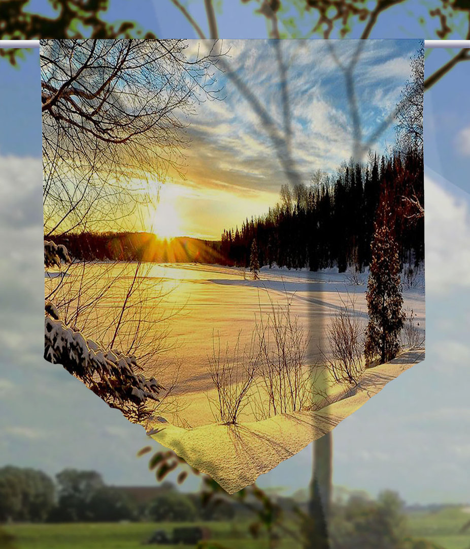 Eines ihrer Fenster braucht eine Erfrischungskur? Warum nicht. Dieser einmalig schöne Scheibenhänger aus unserer eigenen Gardinen-Collection Made in Thüringen kann zu einem echten Highlight in ihrer Wohnung werden. Sie lieben den Winter mit seinen speziellen Farben und Eindrücken? Das Motiv auf diesem Scheibenhänger macht Lust auf einen Spaziergang durch schneebedeckte Landschaften im Licht der Sonne. Die leuchtenden Farben werden ihr Heim wunderbar ergänzen und Sie einladen zum hinsetzten, ausruhen und entspannen. Nutzen Sie die Gelegenheit und machen Sie ihre Wohnung zu einer winterlichen Wohlfühloase