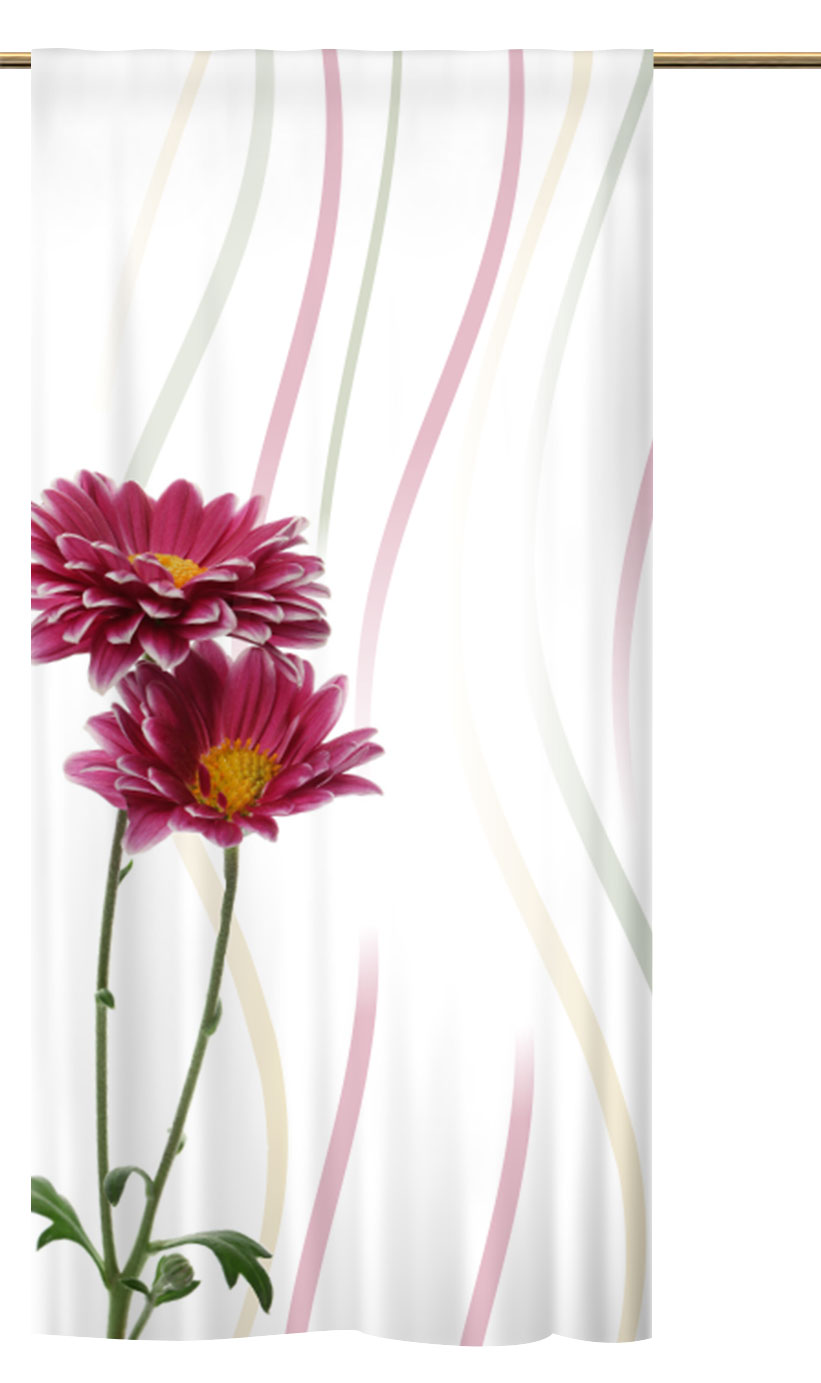 Auf dem Vorhang ist ein Gardinen-for-life Motiv zu sehen,