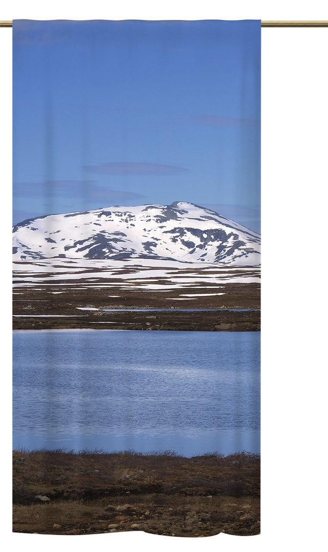 Der Blick über das Wasser auf die schneebedeckten Berge erweckt den Eindruck, mittendrin zu sein. Dieses Motiv bringt die Natur des Nordens mitten in Ihre 4 Wände.