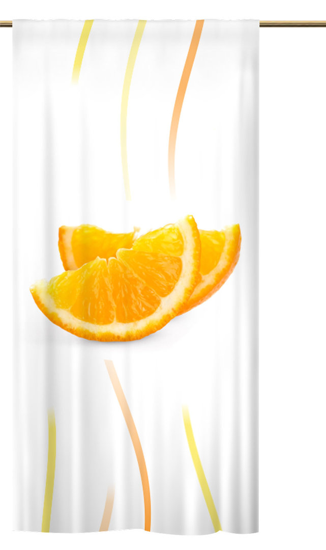 Ist Ihnen bewusst, dass Ihre Wohnung wiedermal eine Veränderung braucht, damit die Attraktivität der Wohnung erhalten bleibt und das Wohnklima verbessert wird? Wenn ja, dann nutzen Sie die Ideen in unserer eigenen Gardinen-Collektion Made in Thüringen. Hier finden Sie tolle Ideen rund um das Fenster. Mit einer neuen Fenster-Dekoration holen Sie sich neue Farben und Motive in den Wohnraum, die diesen nachhaltig verändern werden. Dieser schöne Schlaufenschal fesselt sorfort den Blick. Orangescheiben zieren das Motiv. Sie sorgen nicht nur für frischen Wind in Ihrer Wohnung, sie machen auch Appetit auf etwas Erfrischendes. Lassen Sie sich inspirieren.