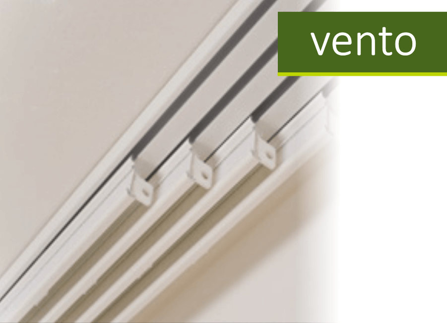 Bei der Vento Schiene handelt es sich um eine Flächenvorhangschiene. Die Schiene verfügt nach Wunsch über einen Seilzug.