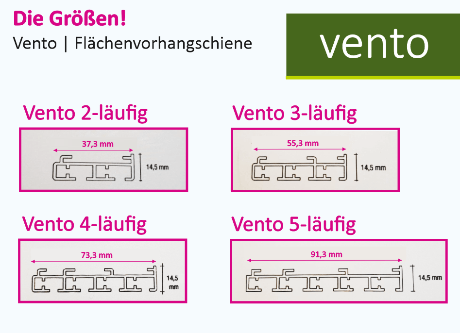 Die Vento Flächenvorhangschiene mit Seilzug hat folgende Größen: