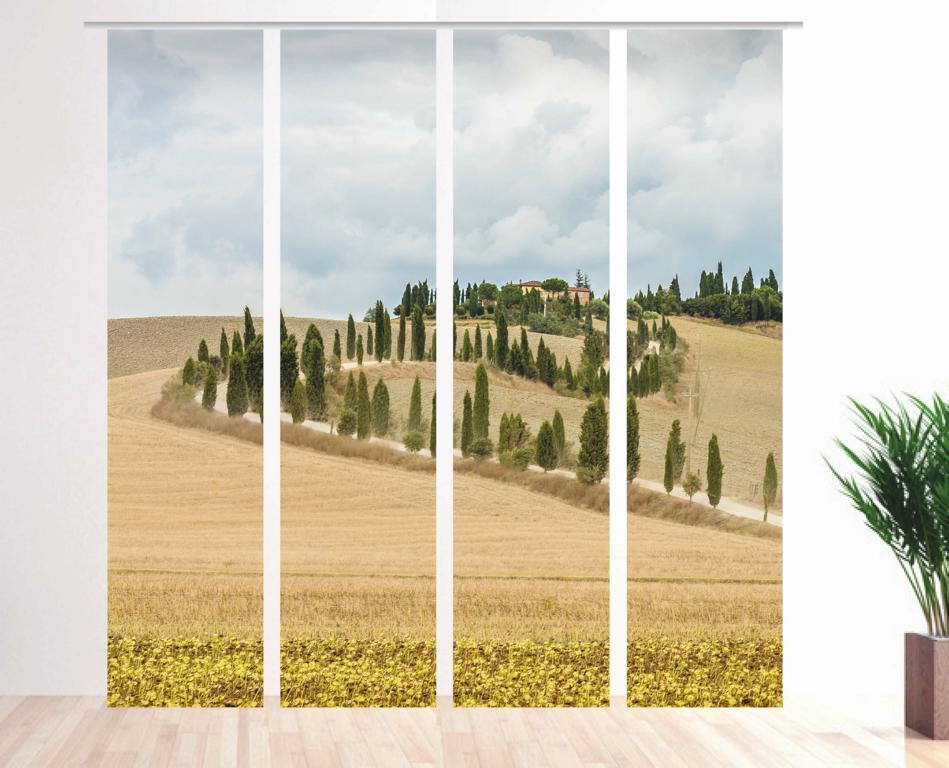 Diese schöne Zypressenallee wird Ihre Wohnung perfekt ergänzen und verschönern. Holen Sie sich diesen einmaligen Flächenvorhang aus unserer thüringischen Gardinen-Collektion als neue Fenster-Dekoration in Ihre Wohnung und Sie werden damit einen Volltreffer landen, der jeden Betrachter begeistern wird.